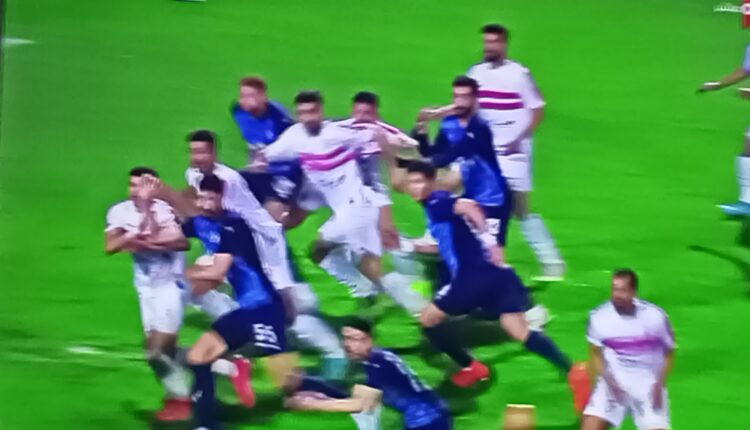 محمد عبد الشافي – محمد عبد الغني – حسام عبد المجيد – حمزة المثلوثي في خط الدفاع.