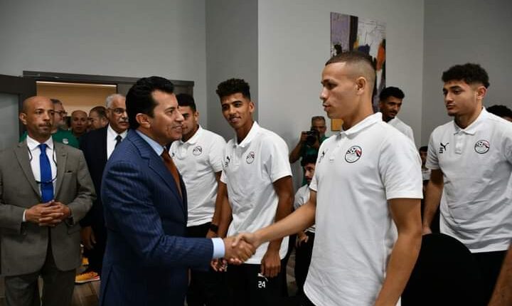 حرص الدكتور اشرف صبحي وزير الشباب والرياضة على زيارة لاعبي المنتخب الاولمبي فى مقر اقامتهم باحد الفنادق بالعاصمة الادارية الجديدة .