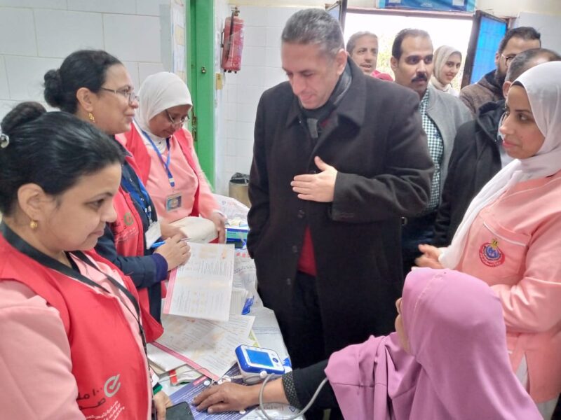 وجه الدكتور محمد أبو السعد بأهمية استيعاب كافة المرضى التابعين لوحدة الغسيل الكلوي وكافة احتياجاتهم الكبية من خدمات القافلة خلال يومي القافلة.