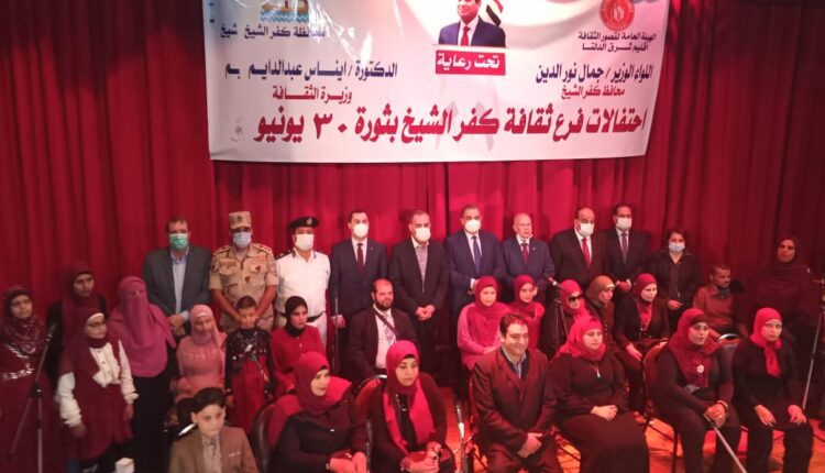 شهد قصر ثقافة كفر الشيخ، الاحتفال بالذكرى الثامنة لثورة 30 يونيو، بحضور اللواء جمال نور الدين ،محافظ كفر الشيخ ، وعمرو البشبيشي، نائب محافظ كفر الشيخ ، والدكتور عبدالرازق دسوقي ، رئيس جامعة كفر الشيخ والعقيد أركان حرب شريف عبد الباري ،المستشار العسكري للمحافظة، واللواء ياسر حفناوي ، السكرتير المساعد للمحافظة، السيد شمس الدين ، عضو مجلس النواب، وعمرو فرج رئيس الإدارة المركزية لإقليم شرق الدلتا الثقافي ، واللواء محمود الكموني ، مساعد مدير الأمن ،والدكتورة جاكلين بشرى ، وكيل وزارة الثقافة ،والدكتور عبدالناصر الشهاوى ، رئيس الإدارة المركزية للمنطقة الأزهرية، وعدد من القيادات الشعبية والتنفيذية وطلاب وطالبات المدارس.