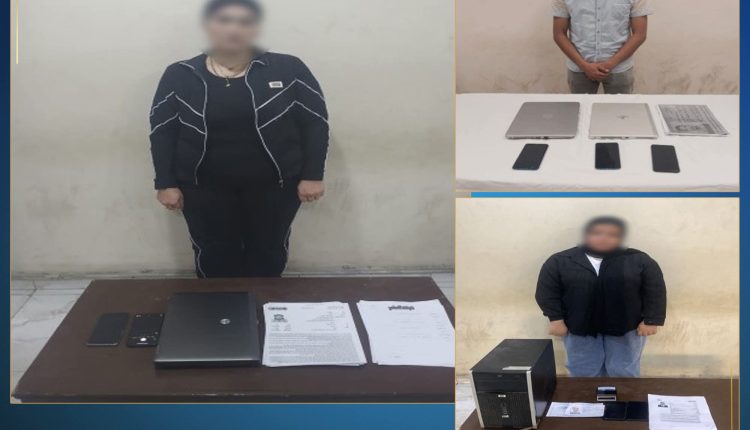 عقب تقنين الإجراءات أمكن ضبط القائمين على إدارة تلك الشركات 4 أشخاص وسيدتين “لـ2 منهم معلومات جنائية” ، وبحوزتهم جوازات سفر –طلبات توظيف – إقرارات وعقود إتفاق عمل بالخارج وهمية – إعلانات خاصة بالشركات 11 هاتف محمول و 6 أجهزة حاسب آلى ووحدة معالجة “بفحصهم فنياً تبين إحتوائهم على دلائل تؤكد نشاطهم الإجرامى”.