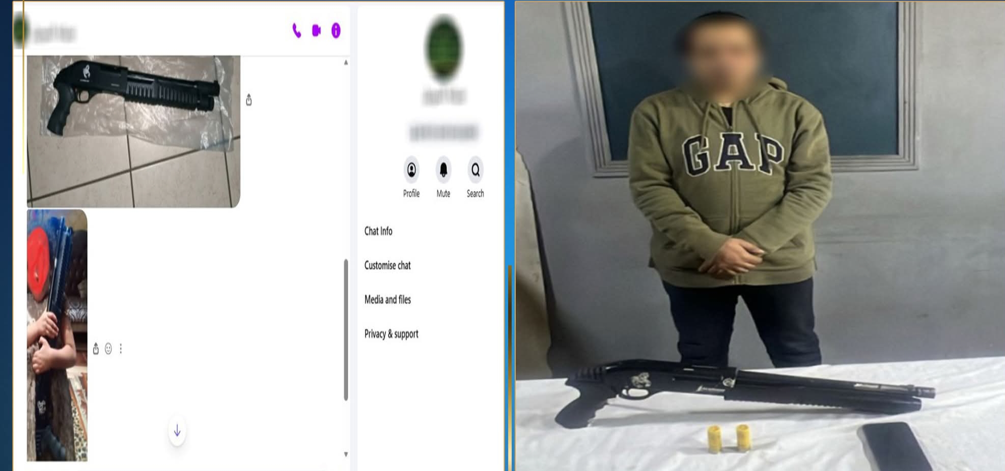 وبالفحص أمكن تحديد وضبط القائم على إدارة الصفحة المشار إليها، وتبين أنه عامل مقيم بدائرة مركز شرطة أبو النمرس بالجيزة، وبحوزته بندقية خرطوش المعروضة للبيع، بالإضافة إلى هاتف محمول. وبفحص الهاتف فنيًا، عُثر على دلائل تؤكد نشاطه الإجرامي، كما تبين عدم حيازته لأي أسلحة أخرى.