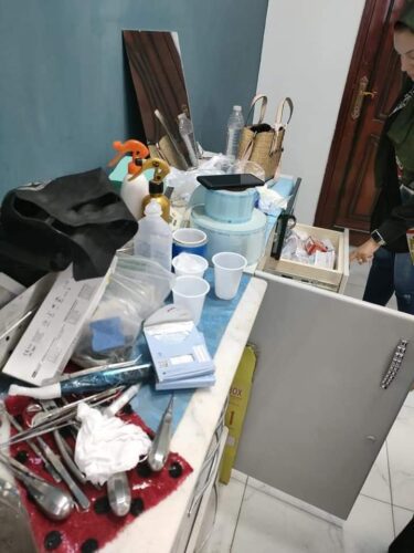 قامت الفرق التفتيشية التابعة لمديرية الصحة بسوهاج من ضبط طالب جامعي بأحد الجامعات الخاصة لطب الأسنان لم يكمل دراسته الجامعية داخل عيادته الخاصة والغير مرخصة بمدينة المنشاه، حال قيامه بالكشف على المرضى فى تخصص الأسنان، وتم ضبط أدوات غير معقمة يستخدمها داخل العيادة .