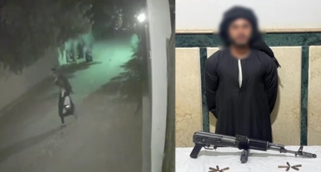 وبالفحص تم تحديد وضبط الشخص الظاهر في الفيديو، وهو عامل مقيم بدائرة مركز شرطة العسيرات، وبحوزته السلاح الناري المستخدم في الواقعة (بندقية آلية).