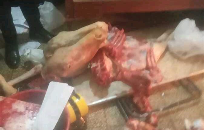 وبالكشف الطبي علي اللحوم. والرؤوس و الأحشاء تبين عدم صلاحيتها للاستخدام. الادمي من حيث تغيير اللون عليها وظهور علامات الفساد