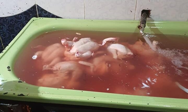 كما أسفرت الحملات عن ضبط 350 كجم دواجن مذبوحة خارج المجازر المرخص لها قانونا وبدون اشراف بيطرى ومقطعة إلى أجزاء، وبفحص هذه الأجزاء تبين حقنها بالماء لزيادة الحجم والوزن وهو ما يعتبر نوع من أنواع الغش التجارى، كما تم ضبط 10 كجم لحوم مفرومة بدون بيانات، وتم تحرير محاضر بالمخالفات واتخاذ باقي الإجراءات القانونية والعرض علي النيابة العامة.