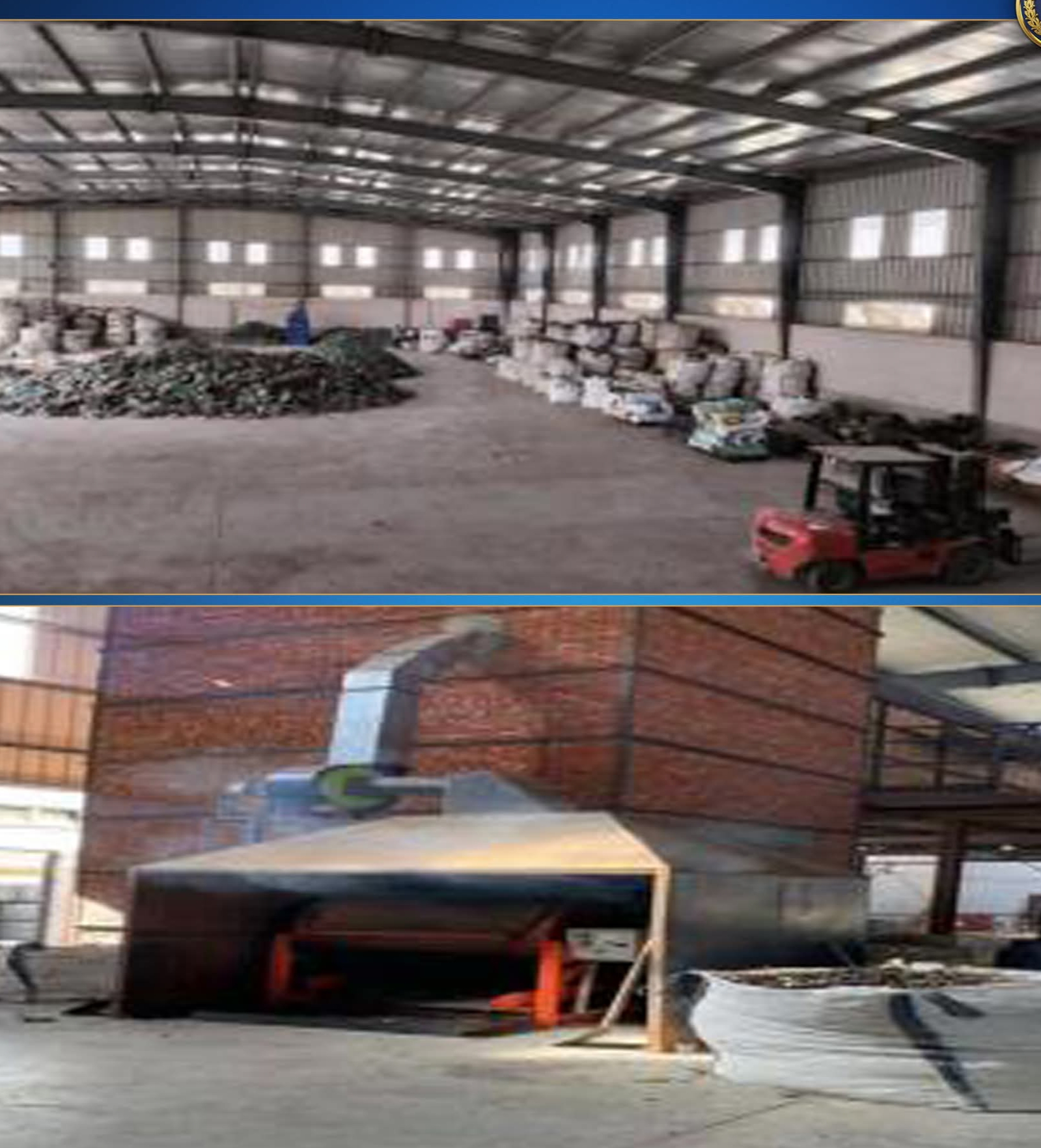عقب تقنين الإجراءات تم إستهداف المصنع المشار إليه وأمكن ضبط (المدير المسئول)، وعُثر بداخل المصنع على (325 طن مواد خام ومنتج نهائى لنفايات إلكترونية خطرة وفحم صناعى).
