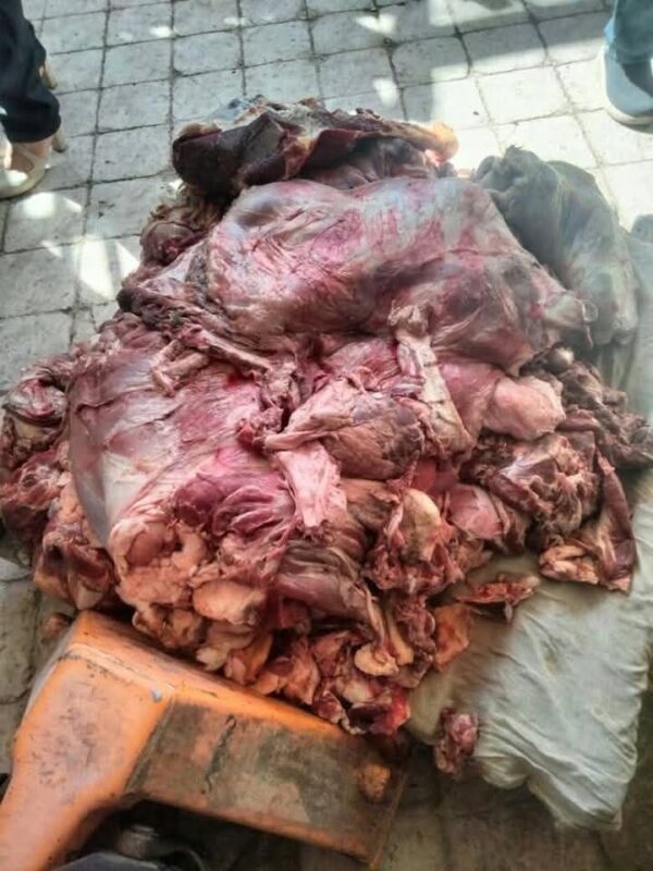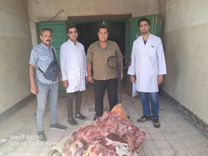 خلال حملة رقابية مكبرة استهدف سوق بيع اللحوم بالأسواق بسوهاج تم ضبط عدد ٢١٠ كيلو حرام لحوم عجالى بقرى منتهية الصلاحية وتفوح منها رايحة كريهة بمنطقة الشهيد والحويتى وذلك قبل عرضها للبيع بمناسبة عيد الأضحى المبارك