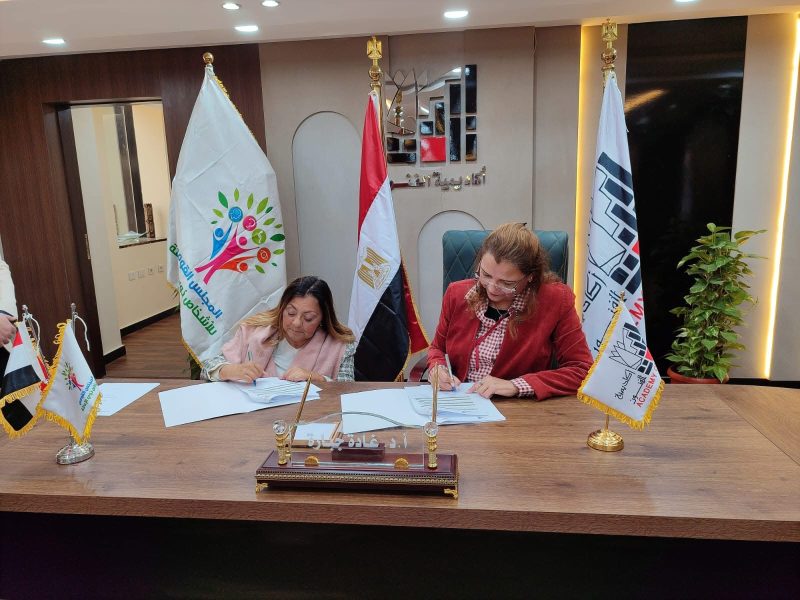 ضمن استراتيجية وزارة الثقافة لتعزيز التواصل الثقافي والعلمى بين الهيئات المختلفة وقعت اليوم الدكتورة غادة جبارة رئيس أكاديمية الفنون بروتوكول تعاون مع الدكتورة إيمان محمد كريم المشرف العام للمجلس القومى للاشخاص ذوي الإعاقة.