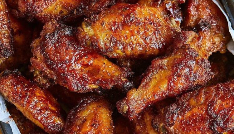 في بولة، اخلطي 2 معلقة كبيرة عسل مع معلقة كبيرة صويا صوص، وادهني الأجنحة بالخليط ده قبل آخر 10 دقايق في الفرن، ورجعيها تتحمر لحد ما تاخد اللون الدهبي الغامق والكاراميل اللذيذ اللي باين في الصورة.