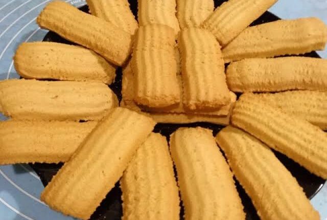 بعد الإنتهاء ضعى البسكويت فى صينية، وإدخالها الفرن على درجة 150 مئوية، ويترك لمدة 20 دقيقة حتى يحصل على اللون الذهبى.