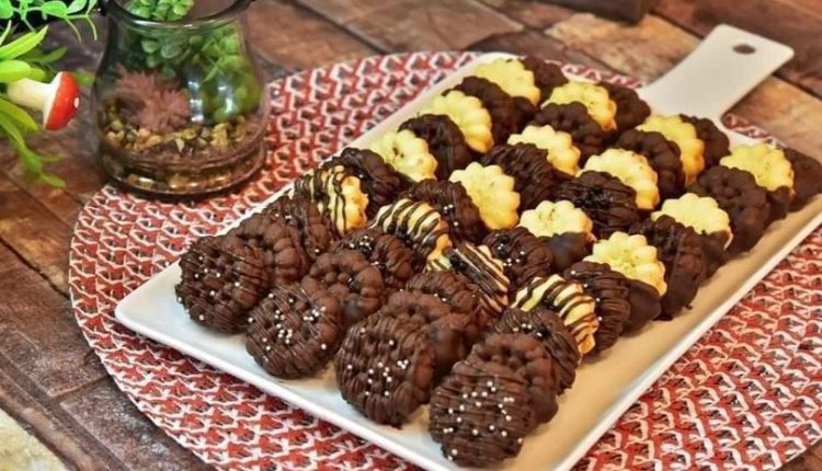 نشكل الخليط بقمع حلوانى ويخبز فرن ١٨٠ لم ١٥ إلى ٢٠ دقيقه ونتركه يبرد تماما التزيين حسب الرغبه وبالعافية