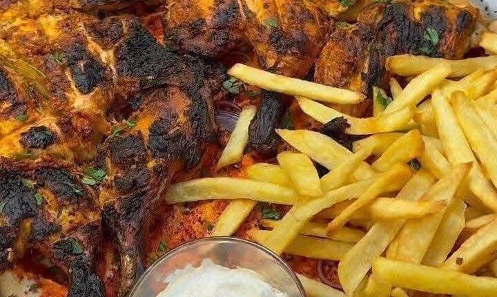• 1 فرخة وزن 1.5 كيلو مفتوحة من الظهر ومفرودة