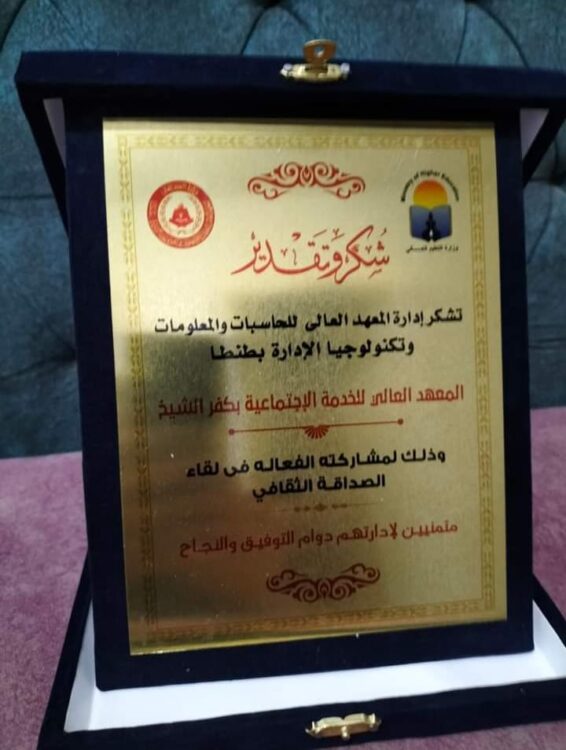فاز طلاب وطالبات المعهد العالي للخدمة الاجتماعية بكفرالشيخ بالمراكز الأولى على مستوى وزارة التعليم العالي .. في مسابقات القرآن الكريم والإنشاد الدينى والأحاديث النبوية الشريفة والإلقاء والترانيم والدورى الثقافى.