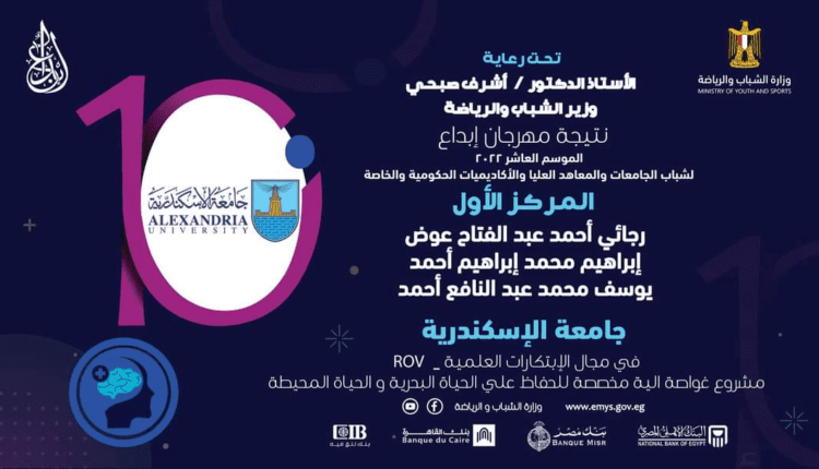 وأشار الدكتور وائل نبيل نائب رئيس جامعة الإسكندرية لشئون التعليم والطلاب، أن المهرجان نظمته وزارة الشباب والرياضة تحت رعاية الدكتور أشرف صبحى وزير الشباب والرياضة والدكتور خالد عبد الغفار وزير التعليم العالي والبحث العلمي، ويُعد أكبر مهرجان فى الوطن العربى في المجالات الثقافية والعلمية والفنية لشباب المؤسسات التعليمية المختلفة وشارك فيه لجان تحكيم تتكون من كبار الفنانين والأدباء وأساتذة الجامعات المتخصصين، وأكد النائب أن الجامعة مستمرة في دعم الأنشطة الطلابية في كافة التخصصات وتشجيع أبنائها للمشاركة في جميعالفاعليات المحلية، والإقليمية لتكوين الشخصية المتكاملة لديهم.