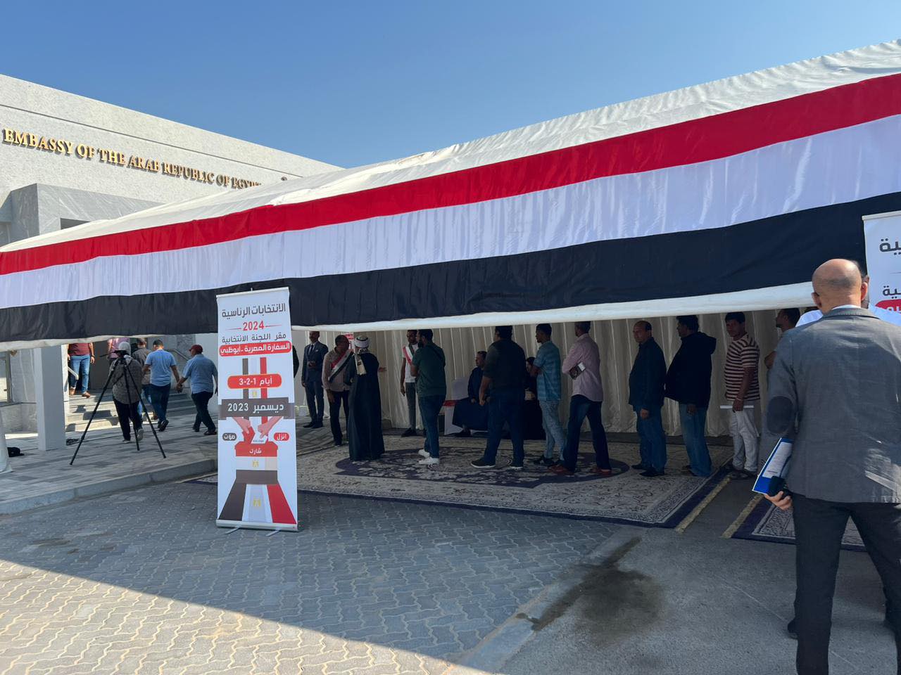 واصل المصريون المقيمون في دولة الإمارات العربية المتحدة التوافد على مقر السفارة المصرية في أبو ظبي، للتصويت في الانتخابات الرئاسية المصرية 2024، بعد أن بدأ التصويت في الساعة التاسعة صباحاً بتوقيت الإمارات، والذي يتزامن مع السابعة صباحاً بتوقيت مصر.