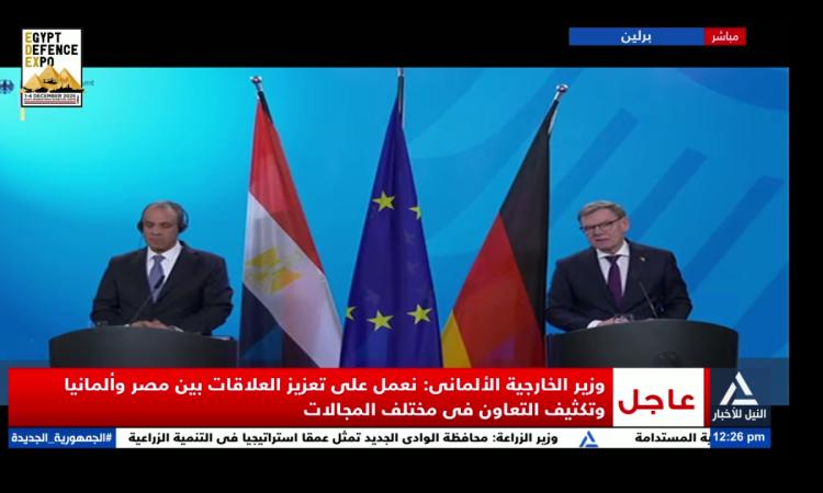 واضاف خلال مؤتمر صحفي مع نظيره الألماني يوهان ديفول:” تم التوقيع على وثيقة لتدشين آلية للتشاور السياسي بين مصر وألمانيا”.