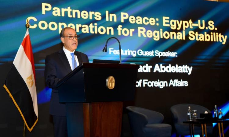 القى الوزير عبد العاطي كلمة أشاد فيها بالشراكة الاستراتيجية بين مصر والولايات المتحدة مثمنا عمق العلاقات بين البلدين فى شتى المجالات، مبرزا ما تمثله الشراكة الاقتصادية والتجارية والاستثمارية من محور رئيسى فى هذه الشراكة، مؤكدا أن ملف التعاون الاقتصادي وجذب الاستثمارات الأمريكية يمثل أولوية رئيسية.
