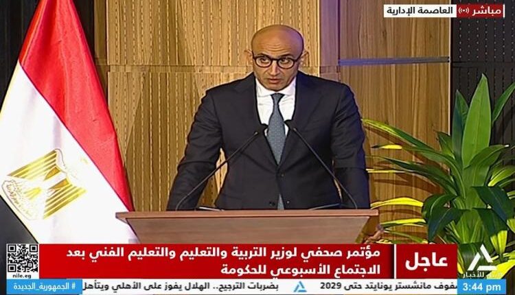 وأضاف عبداللطيف – خلال مؤتمر صحفي عقده عقب انتهاء اجتماع مجلس الوزراء اليوم بالعاصمة الإدارة – أن الوزارة مستمرة في تنفيذ المبادرة الرئاسية الرامية إلى تعيين 30 ألف معلم سنويا بالإضافة إلى تفعيل قانون مد الخدمة والتعاقد مع 50 ألف معلم بنظام الحصة .. مؤكدا سعي الوزارة للاستعانة بالخريجين الجدد لأداء الخدمة العامة في المدارس بالتعاون مع وزارة التعليم العالي، مما يسهم في سد جزء من العجز الحالي في أعداد المعلمين.