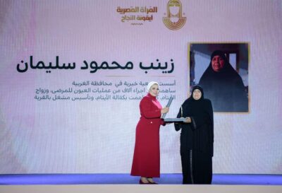 وجه الدكتور طارق رحمي محافظ الغربية ،تهنئة بالإنابة عن أهالي الغربية، للسيدة زينب محمود سليمان ابنة قرية ميت المخلص مركز زفتى محافظة الغربية ؛ عقب تكريمها من قرينة رئيس الجمهورية، في احتفالية “المرأة المصرية.. أيقونة النجاح”، ضمن عددًا من السيدات الملهمات والمتفوقات فى المجالات المختلفة.