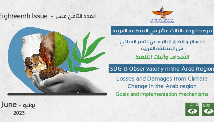 في إطار حرصها على تعزيز مجتمعات مستدامة تحافظ على حياة الإنسان بشكل آمن وجيد، تصدر مؤسسة ماعت للسلام والتنمية وحقوق الإنسان العدد الثامن عشر من “مرصد الهدف الثالث عشر في المنطقة العربية بعنوان الخسائر والأضرار الناتجة عن التغير المناخي في المنطقة العربية: الأهداف وآليات التنفيذ”، ليتناول الإجراءات والتدابير التي تتخذها الدول العربية للتصدي لتغير المناخ وآثاره.