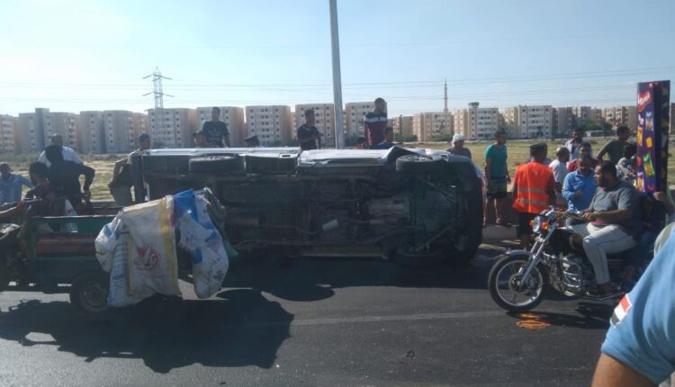 عكس الاتجاه .. مصرع شخص في انقلاب سيارة أعلي كوبري المستقبل .. صور