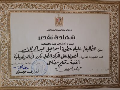 وقد تلقت الطالبة التهنئة من الدكتور رضا حجازى وزير التربية والتعليم، ومن الدكتور طارق رحمى  محافظ الغربية  ومن المهندس ناصر حسن ، وكيل وزارة التربية والتعليم، معبرين عن سعادتهم بحصولها على المركز الأول على مستوى الجمهورية.