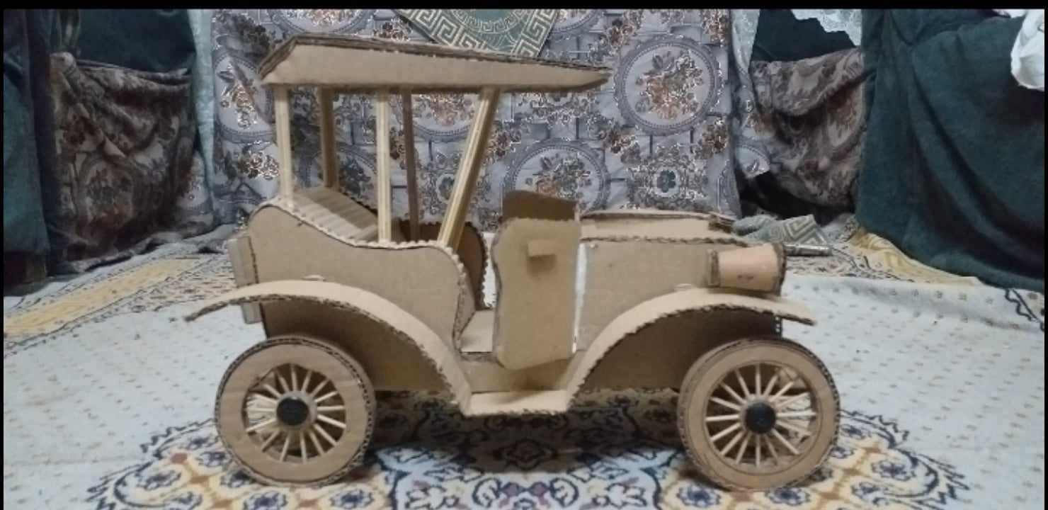 وعن مكان حصوله من على الكرتون قال عماد الدين استخدم الكرتون المستعمل وإعادة تدويره والاستفاده منه واحصل عليه من محلات البقاله والسوبر ماركت وبالنسبه للاحجام الكبيره احصل عليها من محلات الاجهزه الكهربائية والثلاجات وغيرها وعن الادوات المستخدمه في تنفيذ المجسم عبارة عن الادوات الهندسية الكاتر بمقاساته ومسطره وقلم الرصاص وتتوقف مدة التنفيذ علي شكل التصميم وحجمه وتستغرق من يومين الي 15 يوم وحسب الحاله المزاجية وعدد ساعات العمل