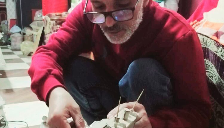 عماد الدين ابن سوهاج  يحول الكرتون المستعمل إلى قطع ديكور مبتكرة