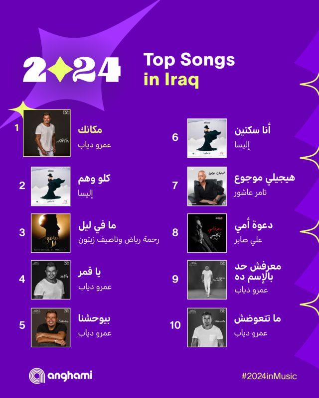 تصدرت العديد من الأغاني للمطرب عمرو دياب إلي جانب العديد من المطربين والمطربات العرب