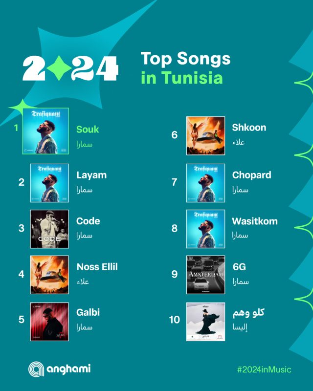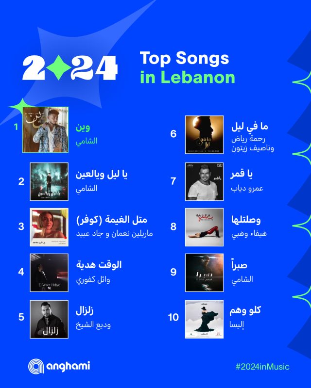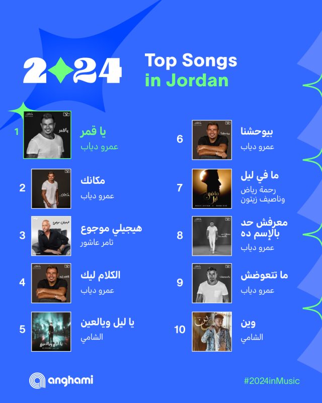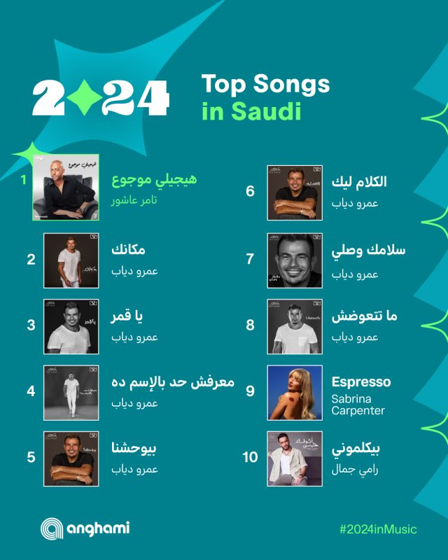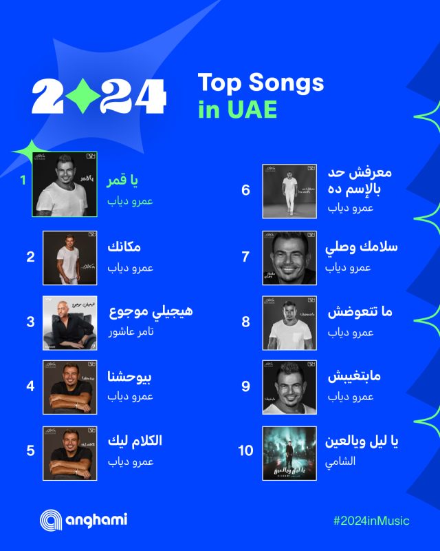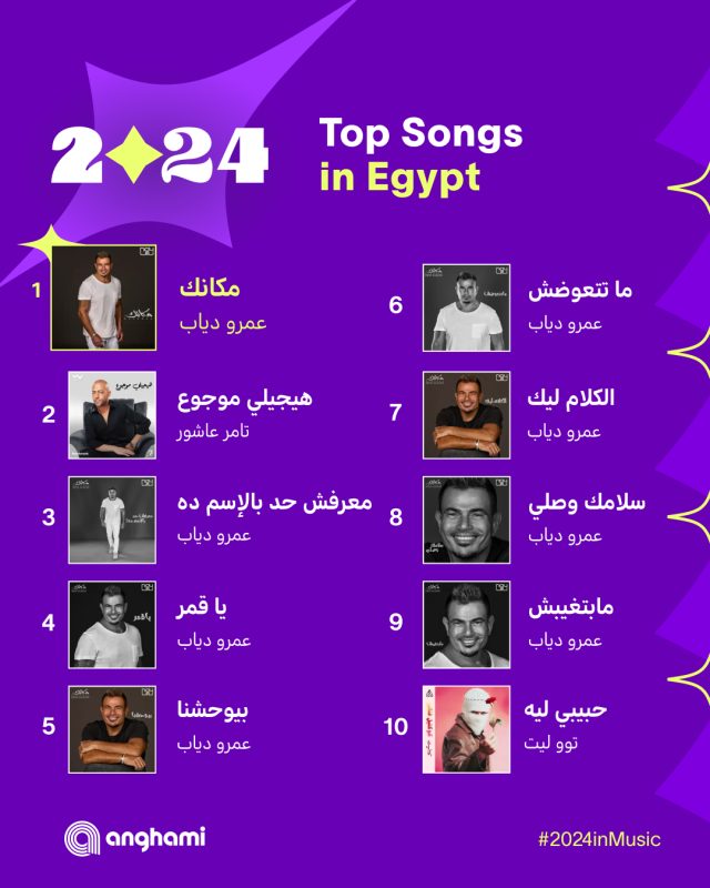 تصدرت العديد من الأغاني للمطرب عمرو دياب إلي جانب العديد من المطربين والمطربات العرب