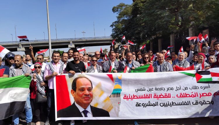 عميدة آداب عين شمس وهيئة التدريس واتحاد الطلاب والعاملين يشاركون في الوقفة التضامنية للجامعة مع الشعب الفلسطيني
