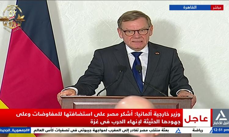 أعرب وزير الخارجية الألماني يوهان فاديفول، عن شكره لمصر على استضافتها للمفاوضات وعلى جهودها الحثيثة لإنهاء الحرب في غزة.