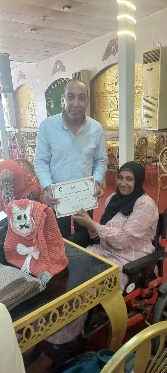 وقد قام شيخ العرب عبدالله وكيل المديريه بتوزيع شهادات التخرج للمتدربات ومن ببنهم زوى الهمم بحضور كلا من شعبان الشامى مدير إدارة الأسر المنتجه والتكوين المهنى و نبيهه الشناوى رئيس وحده شبرا النمله الاجتماعيه ومحمد الفار مدير الجمعيه(مدير مركز الإعداد )و ناريمان فؤاد محمد مدرب الخياطه بأداره الأسر المنتجه