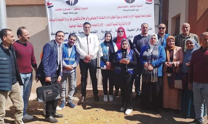 تحت رعاية الدكتور أحمد القاصد رئيس جامعة المنوفية نظمت الإدارة العامة لرعاية الطلاب “إدارة النشاط الاجتماعى والرحلات’ بالتعاون مع وزارة الشباب والرياضة” الإدارة المركزية لتنمية الشباب الإدارة العامة للبرامج والأنشطة الجامعية”و بالتعاون مع إدارة القوافل بالجامعة قافلة طبية توعوية الي قرية عشما مركز الشهداء ،وذلك تحت رعاية الدكتور أشرف صبحى وزير الشباب والرياضه والدكتور أحمد فرج القاصد رئيس الجامعة وتحت إشراف الدكتور صبحى شرف نائب رئيس الجامعة لشئون خدمة المجتمع وتنمية البيئة.