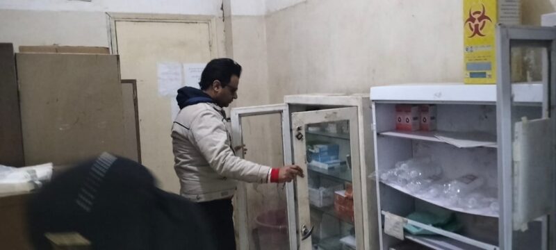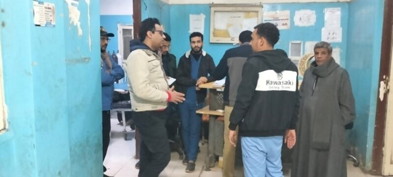 و تلاحظ و جود طالب بكلية الطب بالسنة الرابعة يتواجد بالاستفبال يقوم بالكشف علي المرضي و و جه دويدار مرافقيه بتحرير محضر إثبات حالة و تحويل الأمر للشئون القانونية بالمديرية ، و تلاحظ عدم وجود خيوط او أدوية بالإستقبال علي الرغم من إمداد المديرية للمستشفي بالادوية والمستلزمات الخاصة بالحالات الطارئة وعلي أثره قرر السيد وكيل الوزارة نزول جميع استف إشراف التمريض بالإستقبال إلي ستف تمريض . موجهاً مدير إدارة التمريض بالنزول ضمن الفريق العلاجي لتقيم الوضع بالمستشفي ، وحث دويدار الجميع علي بذل مجهود أكبر لتلبية إحتياجات أهالي العسيرات