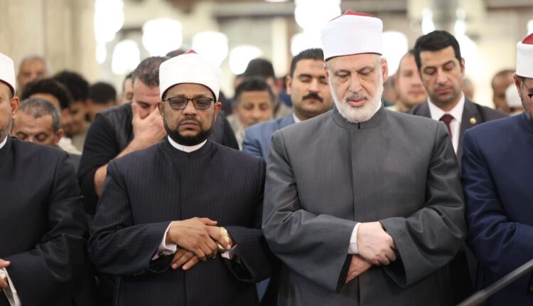 تقدم المصلين فضيلة الدكتور محمد الضويني ، وكيل الأزهر، والدكتور محمد الجندي، أمين عام مجمع البحوث الإسلامية، والدكتور عبد المنعم فؤاد، المشرف العام على الأروقة العلمية بالجامع الأزهر، والدكتور هاني عودة، مدير عام الجامع الأزهر، ونخبة من علماء وقيادات الأزهر.