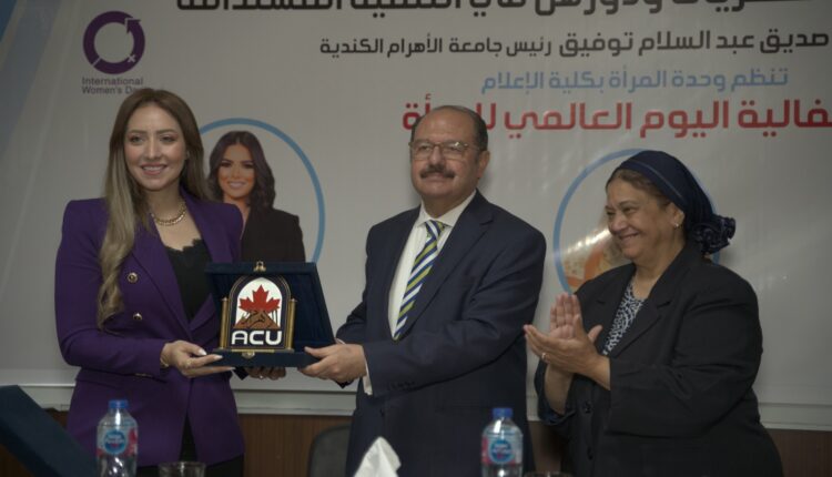 نظمت وحدة المرأة بكلية الإعلام جامعة الأهرام الكندية، احتفالية بمناسبة اليوم العالمي للمرأة تحت عنوان “مسيرة الإعلاميات المصريات ودورهن في التنمية المستدامة”، تحت رعاية الدكتور صديق عبد السلام، رئيس الجامعة، لتكريم الأجيال النسائية المضيئة في الإعلام المصري، وعلى رأسها نادية مبروك، رئيس الإذاعة المصرية الأسبق وعضو لجنة الثقافة والإعلام بمجلس الشيوخ، ودينا شرف الإعلامية بالتلفزيون المصري، ومودة كمال، مذيعة التواصل الاجتماعي لمبادرة حياة كريمة، والإعلامية التلفزيونية الشابة منة يعقوب.