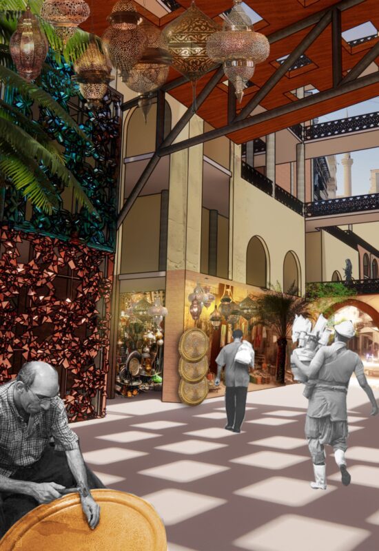 اختار الطالب مصطفى زهران حارة برجوان في حي الجمالية كمعلم للتراث العمراني المستدام في القاهرة مع التركيز في مشروعه على استخدام الحرف النحاسية والحفاظ على المباني التراثية في المنطقة بالتوازي مع خفض معدل الكربون. وقال زهران: “واجهتنا تحديات رئيسية تتمثل في إيجاد حلول توازن بين الحفاظ على التراث والاستدامة الخالية من الكربون وإحياء الحرف التقليدية والسياحة بطريقة صديقة للبيئة. وتمكنا من القيام بذلك من خلال المرحلة البحثية الدقيقة حيث قمنا بربط تلك العوامل المختلفة لإيجاد حلول قابلة للتطبيق لهذه القضايا تباعا.”