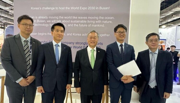 زار السفير الكوري كيم يون هيون جناح هيونداى روتيم فى معرض TRANSMEA 2023 أثناء الترويج لبوسان اكسبو 2030