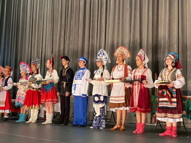 وضم برنامج الإحتفالية استعراضات واغاني من الفلكور الروسي، والرقصات الشعبية، والتابلوهات الاستعراضية بأداء مبهر حاز اعجاب الحضور، وكذلك تم تقديم عرض مسرحي موسيقي.