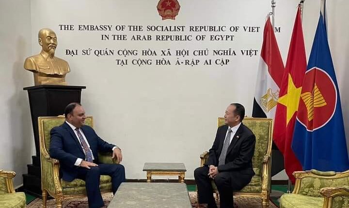 بمناسبة الذكرى ال78 لليوم القومي والذكرى الستين للعلاقات الدبلوماسية بين البلدين الصديقين اوفد الرئيس عبد الفتاح السيسي رئيس الجمهورية السيد احمد الانصاري إلي سفارة فيتنام بالقاهرة لتقديم التهنئة لفيتنام حكومة وشعبا بهذه الذكرى العظيمه كما تمنى الرئيس السيسي للشعب الفيتنامي الصديق تحقيق المزيد من الإنجازات وتنامي العلاقات بين البلدين وقد عبر السيد احمد الانصاري عن إعجابه بالبناء والتطوير الذي تشهده فيتنام متمنيا تعزيز العلاقات بين البلدين في شتى المجالات من جانبه عبر سعادة السفير نجوين هوي دونج سفير فيتنام بالقاهرة عبر عن امتنانه وشكره العميق لفخامة الرئيس عبد الفتاح السيسي رئيس جمهورية مصر العربية وقدم له التهنئة لما تشهده مصر هذه الأيام من نهضة وإنجازات عديدة وقال إننا نعمل سويا على تعزيز العلاقات الثنائية بين البلدين لصالح الشعبين الصديقين من أجل السلام والاستقرار في المنطقة والعالم