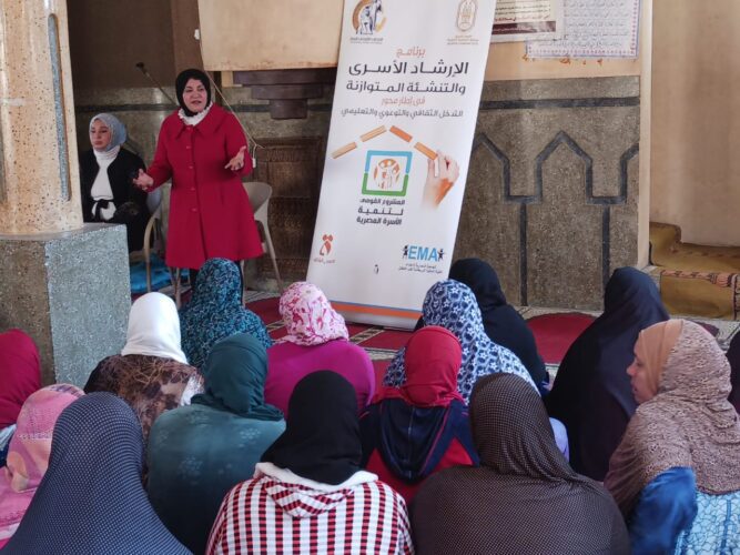 في إطار المشروع القومي لتنمية الأسرة المصرية، الذي أطلقه الرئيس عبدالفتاح السيسي، رئيس الجمهورية، في قرى مبادرة حياة كريمة، وضمن محور التوعية والتثقيف، أطلق المجلس القومى للمرأة برنامج ،” الإرشاد الأسري والتنشئة المتوازنة “، والذي يتضمن مجموعة من الحملات التوعوية مثل الندوات واللقاءات الجماهيرية بالجامعات ومعاهد التمريض ومراكز الشباب للتعريف بمشروع تنمية الأسرة، وبمنهج المشورة الأسرية بشكل خاص، بالإضافة إلى تنظيم ورش عمل بفرع المجلس بالمحافظة حول منهج المشورة الأسرية والتنشئة المتوازنة تستهدف الرائدات بالمحافظة، بهدف تدريبهن للمشاركة في حملات المجلس الخاصة بمشروع تنمية الأسرة.