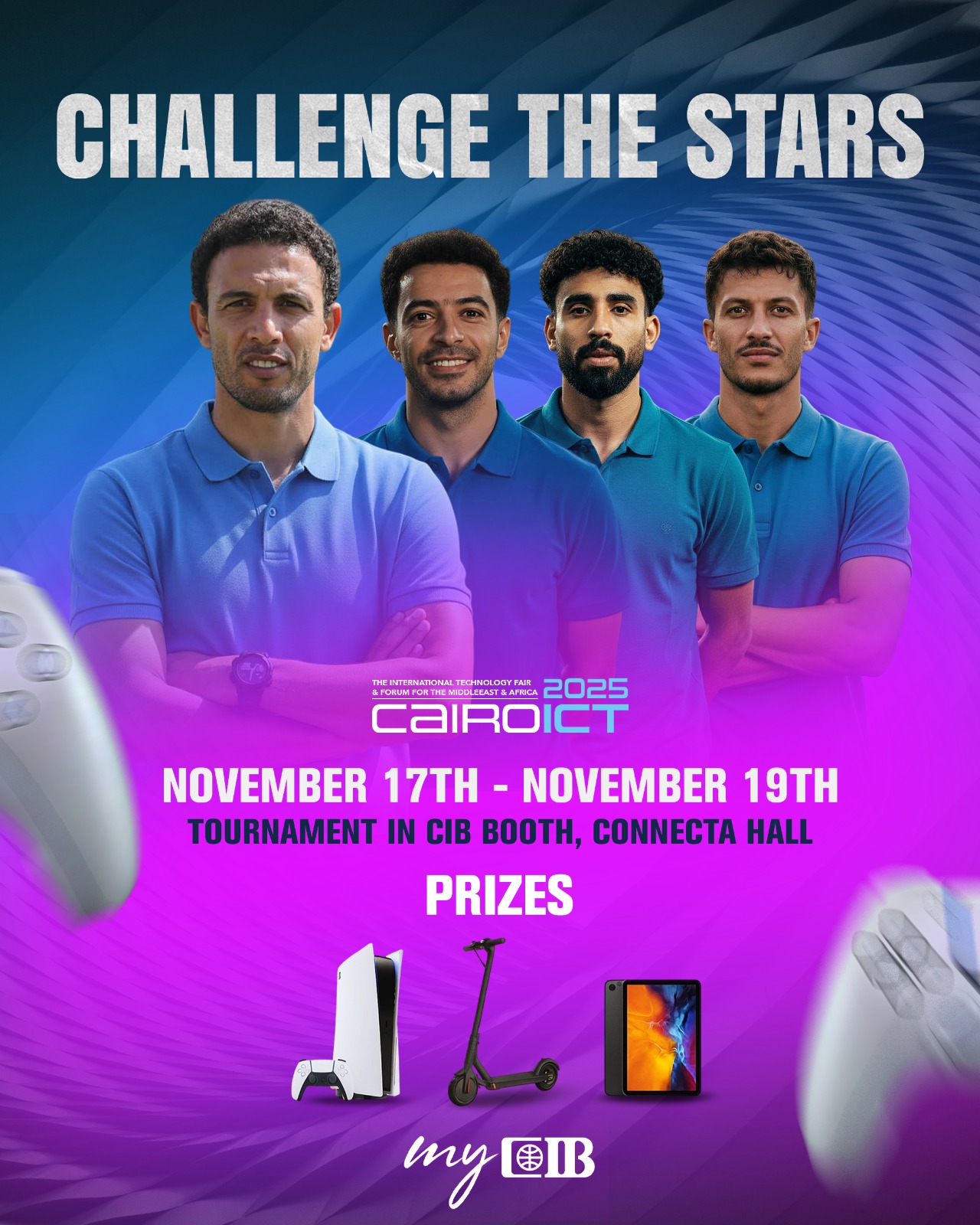 وفي إطار حرص البنك التجاري الدولي CIB على تعزيز الاستفادة لعملائه، أعلن البنك أن التسجيل والمشاركة في البطولة متاحان حصريًا لعملاء My CIB، حيث يمكن للراغبين الاشتراك عبر التطبيق أو المنصة الإلكترونية أو بالتسجيل مع موظفي البنك الموجودين بجناح البنك التجاري بالمعرض، ضمن سياسة البنك لتقديم مزايا وخدمات حصرية تعزز من تجربة العملاء وتشجعهم على الانخراط في أنشطة ترفيهية وتكنولوجية ورياضية مميزة.