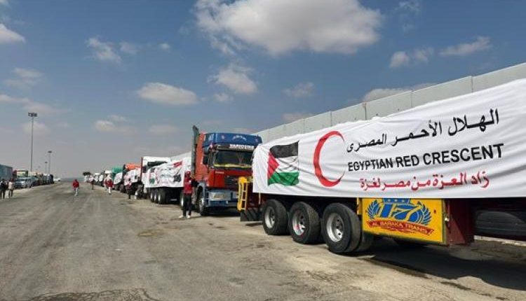 شرعت شاحنات المساعدات الإنسانية والإغاثية ضمن قافلة “زاد العزة..من مصر إلى غزة”، اليوم الثلاثاء، في الدخول إلى الفلسطينيين بقطاع غزة من البوابة الفرعية لميناء رفح البري وصولا إلى معبر كرم أبو سالم جنوب شرق القطاع، حيث تخضع الشاحنات للتفتيش من قبل قوات الاحتلال الإسرائيلي قبل أن تدخل إلى الفلسطينيين بالقطاع.