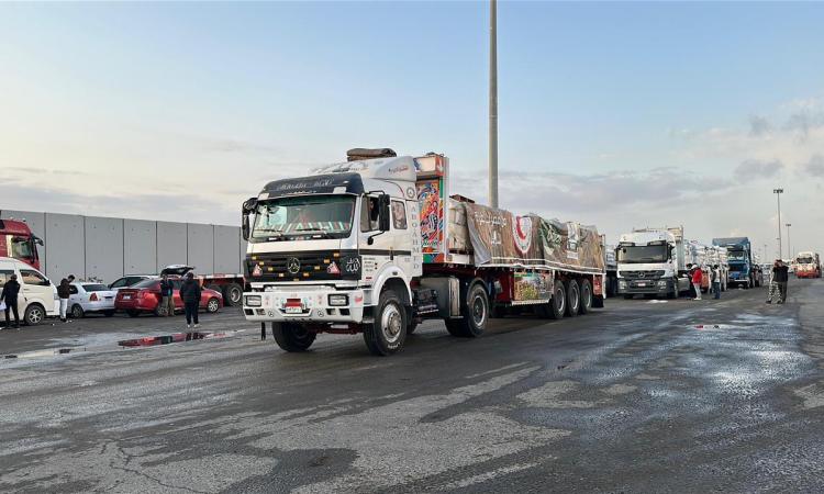 شرعت قافلة شاحنات المساعدات الإنسانية الـ85 في الدخول إلى الفلسطينيين بقطاع غزة، عبر البوابة الفرعية لميناء رفح البري باتجاه معبري كرم أبوسالم والعوجة، تمهيدا لإدخالها إلى القطاع.