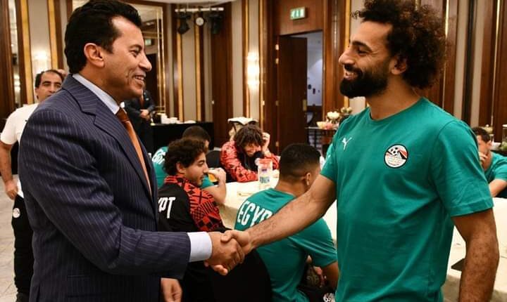 قبل انطلاق الجولة الاولى بتصفيات كأس العالم ..وزير الرياضة يؤازر المنتخب المصري