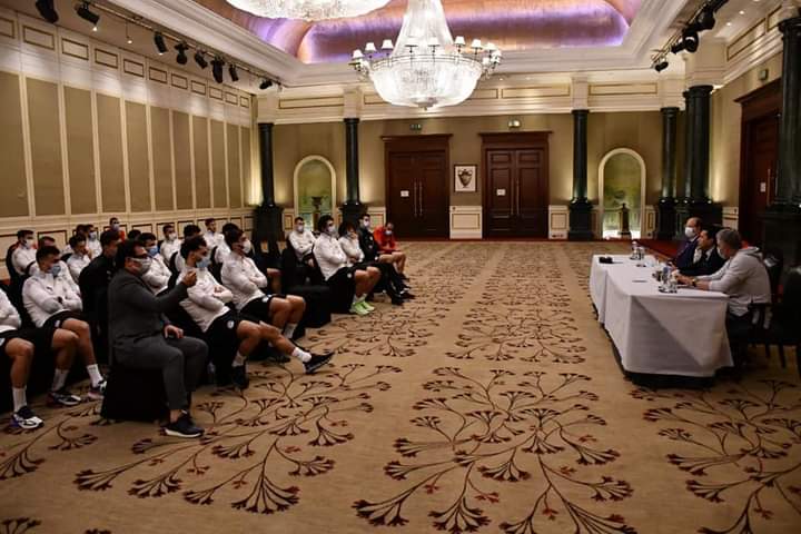 ونقل صبحى للاعبين تحيات المهندس مصطفى مدبولى رئيس الوزراء، وطالبهم ببذل أقصى جهد لإسعاد عشاق الكرة فى مصر والفوز بالبطولة، ووعدهم بصرف مكافأة مالية كبيرة عند إحراز البطولة، مؤكداً على متابعة القيادة السياسية لحظة بلحظة لهم.