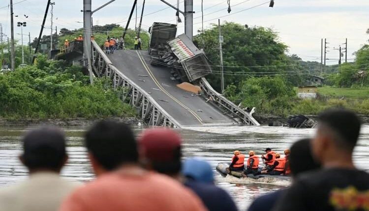 وقالت هيئة إدارة المخاطر في الإكوادور إن أربع شاحنات وسيارة ودراجتين ناريتين سقطت في المياه يوم الأربعاء عندما انهار الجسر في قرية داولي على بعد 50 كيلومترا شمال ميناء جواياكيل (غرب).