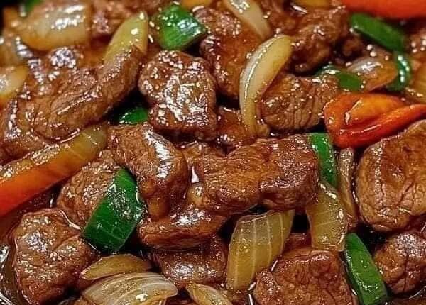 2. إضافة اللحم: أضيفي مكعبات اللحم وقلبي حتى تتغير لونها.